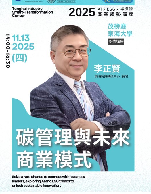 本院「半導體產業微學程」於114年11月13日邀請東海智慧轉型中心顧問-李正賢顧問演講,演講題目為「碳管理與未來商業模式」。