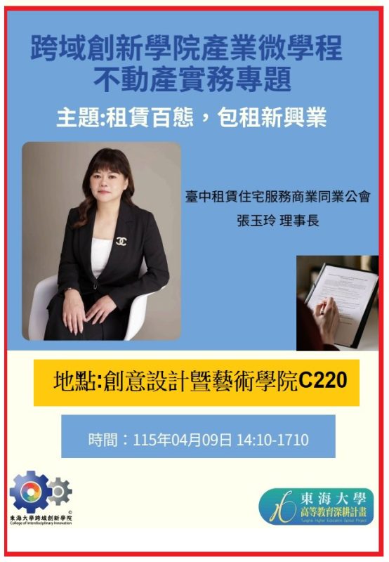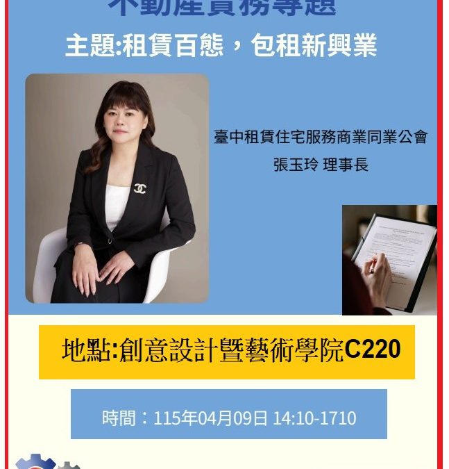 不動產實務專題,主題:租賃百態,包租新興業-台中租賃住宅服務商業同業公會 張玉玲理事長