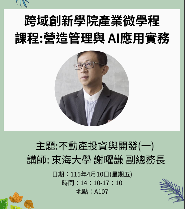 營造管理與AI應用實務 不動產投資與開發(一)-東海大學 謝曜謙副總理長