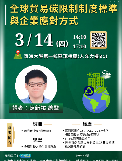 邀請禾豐碳中和薛新祐營運總監演講