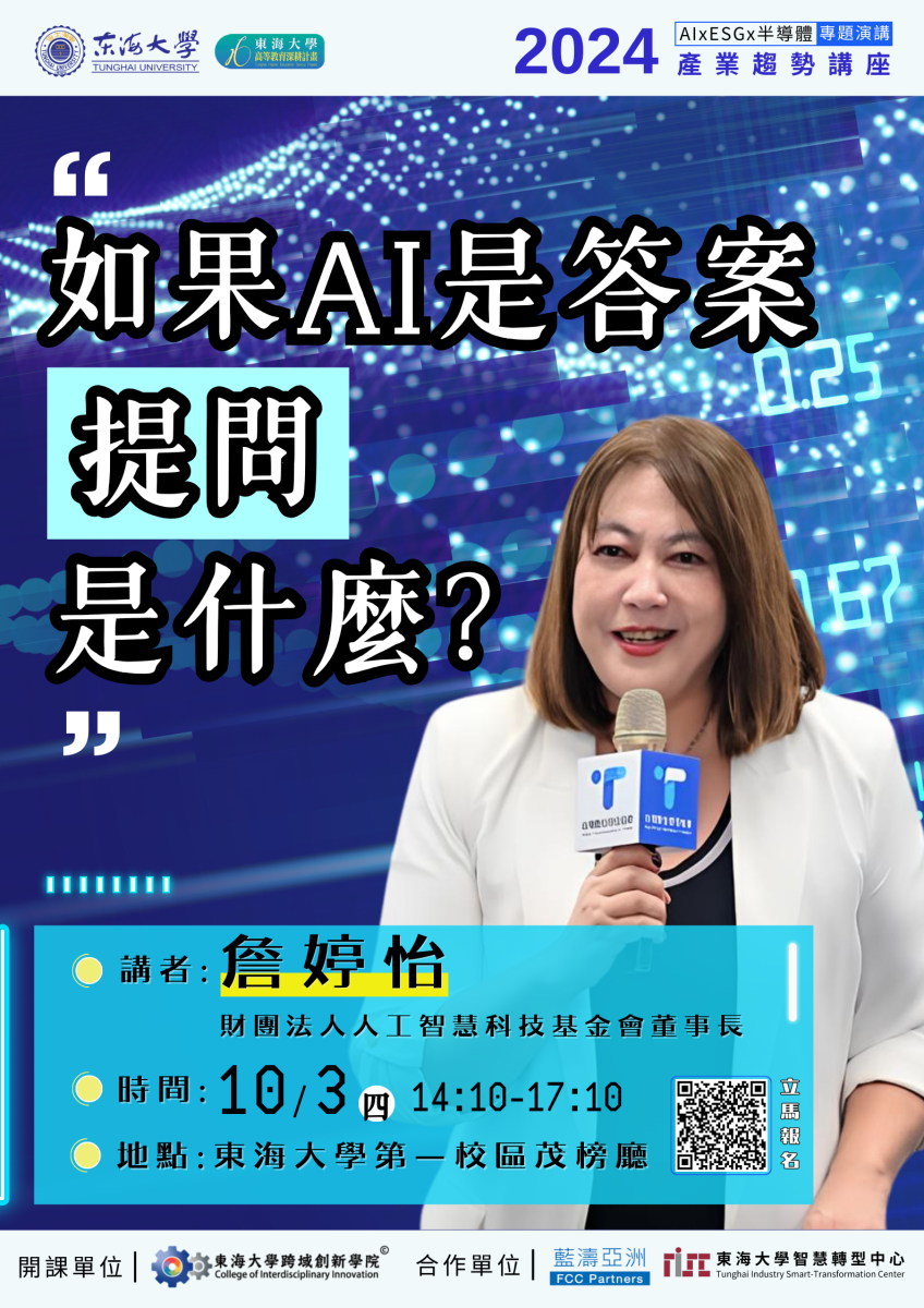 邀請財團法人人工智慧科技基金會董事長-詹婷怡演講
